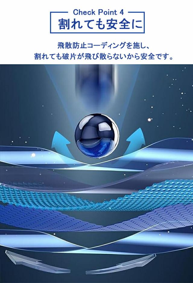 過度の衝撃による破損の場合、ガラス飛散防止性があるため割れても尖ったガラス片になりにくいため、本体に傷がつきにくい。