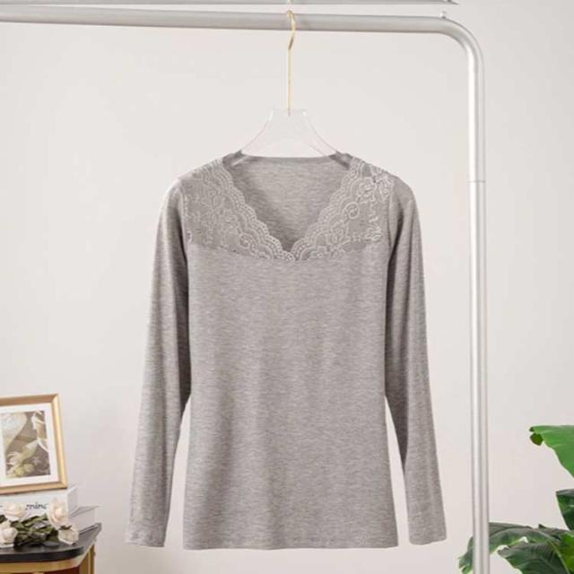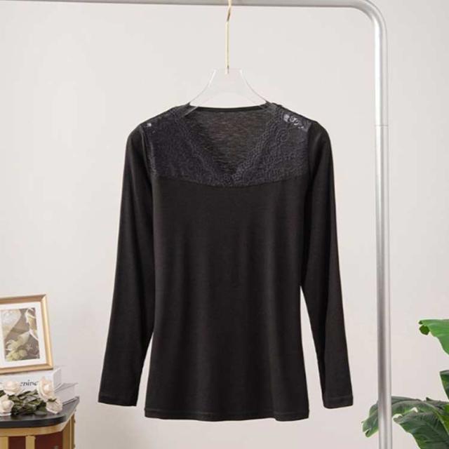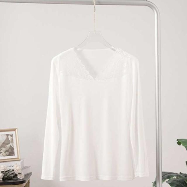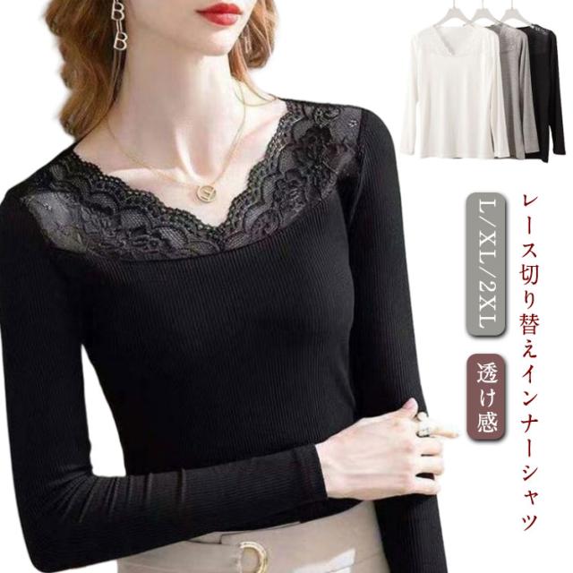 おしゃれ カジュアル コーデ レディース シャツ 透け感 レース Vネック シンプル 大人 きれいめ 女性用 春秋 薄手 インナーシャツ 長袖 冬 重ね着 かわいい 上品 セクシー キュー 女性