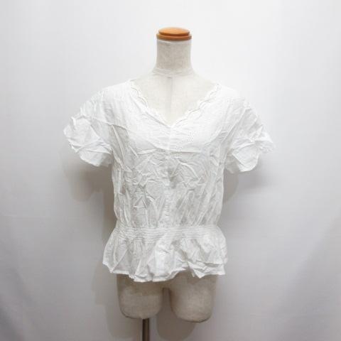【中古】アースミュージック&エコロジー 半袖 刺繍 コットン ブラウス F 白 ホワイト カットソー レディース