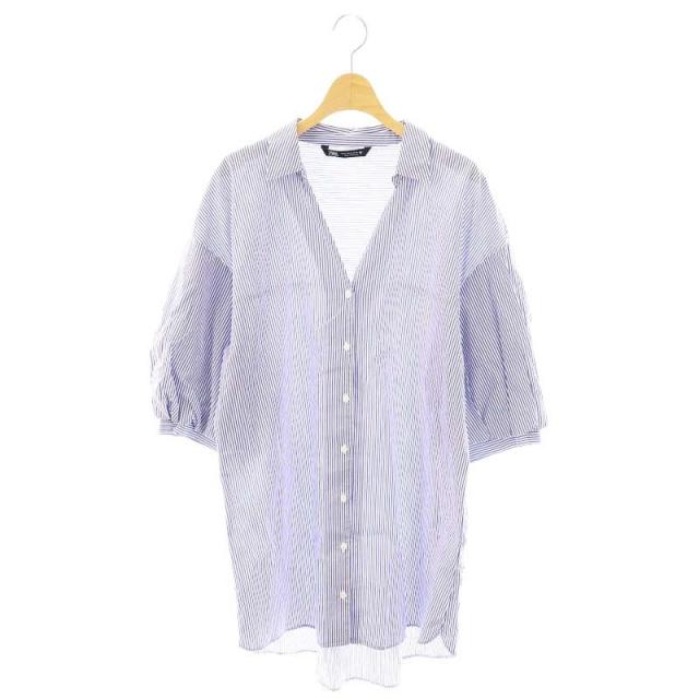 【中古】ザラ ZARA シャツワンピース 膝丈 七分袖 前開き ストライプ コットン M 白 青 /NR ■OS ■AX レディース