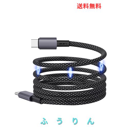 磁気充電ケーブル タイプC USB-C to USB Cケーブル 自動収納【100W/5A PD対応 急速充電 480Mbpsデータ転送 USB2.0】高耐久ナイロン 自動