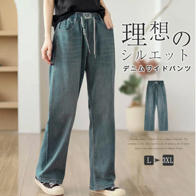 このデニムワイドパンツは、ゆったりとしたシルエットが魅力で、カジュアルなデザインながら体型カバー効果も抜群です!ウエストゴム仕様なので、楽に履ける上に動きやすさも兼ね備えています。ストレートなラインは、どんなコーディネートにも合わせやすく、多様なシーンで大活躍!