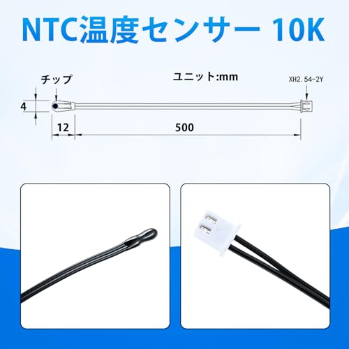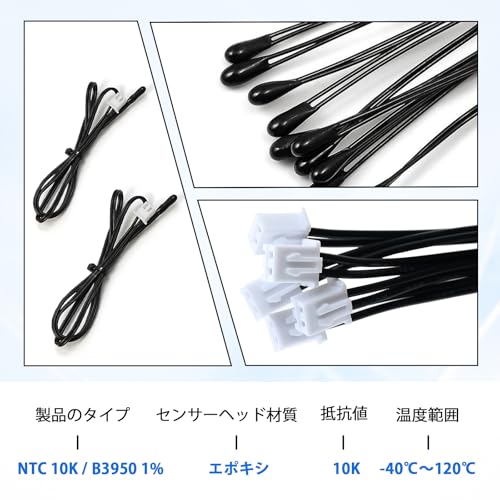 温度センサー 10K NTC サーミスタプローブ エポキシ 50cm 5個 感応温度 エアコン用 温度センサープローブ 10K NTC熱センサープローブ デジタル温度センサー