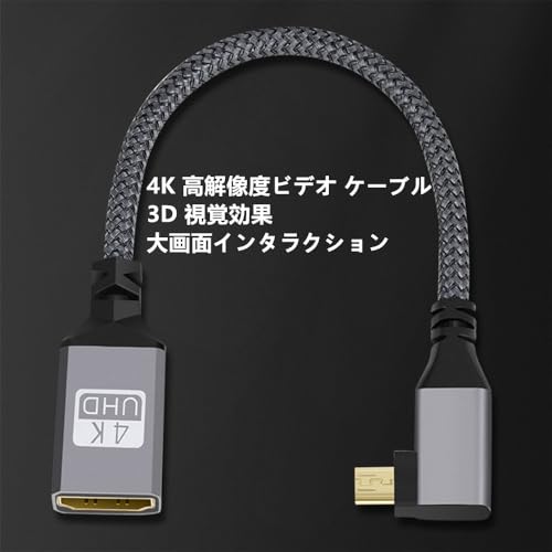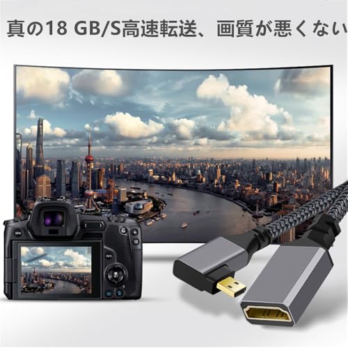 mini HDMI オス HDMI メス 変換ケーブル ハイスピード HDMIタイプAメス-HDMIタイプC(mini)オス microHDMI(オス)to HDMI(メス)変換ケーブル HDMIタイプAメス-HDMIタイプC(micro)オス90°L型 金メッキコネクタ搭載 高速データ伝送 (4K/microHDMI to HDMI 上L)