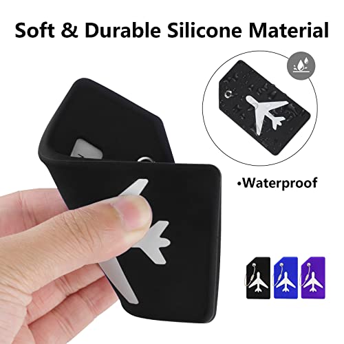 ネームタグ 荷物タグ スーツケースタグ 出張用タグ ネームタグ 番号札 バッグ用ネームタグ シリコン 旅行タグ トラベル用 旅行手荷物 ラベル 紛失防止 三枚入り (ブラック/ブルー/パープル)
