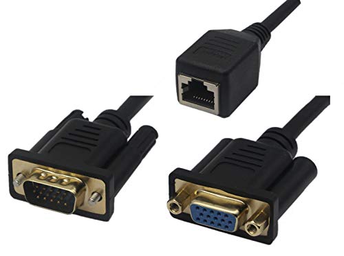 RJ45 VGAケーブル VGA 15ピン メス&オス RJ45メス マルチメディア ビデオ用 Cat5 / 6 イーサネット LANコンソール VGA信号 コンピュータモニタ延長ケーブル (1ペア)