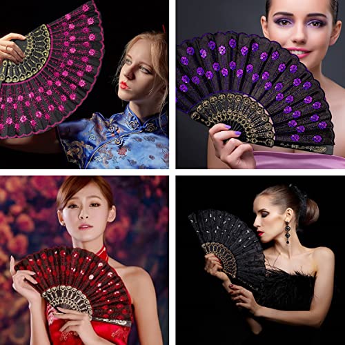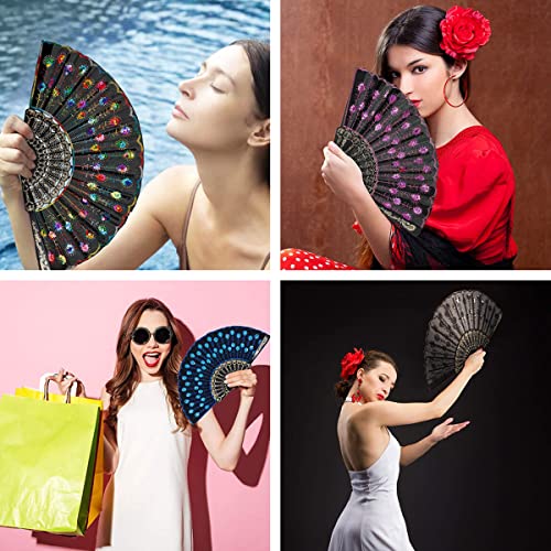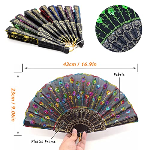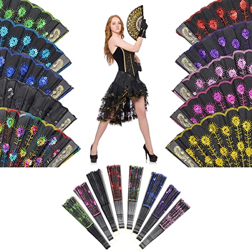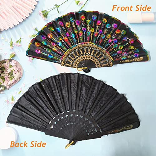 扇子 エレガント 刺繍の花 スパンコール 折りたたみ式 装飾り扇子 為に ダンシング 結婚式 パーティ 記念品ギフト 壁掛け装飾 写真小道具 工芸品 (C) 2個