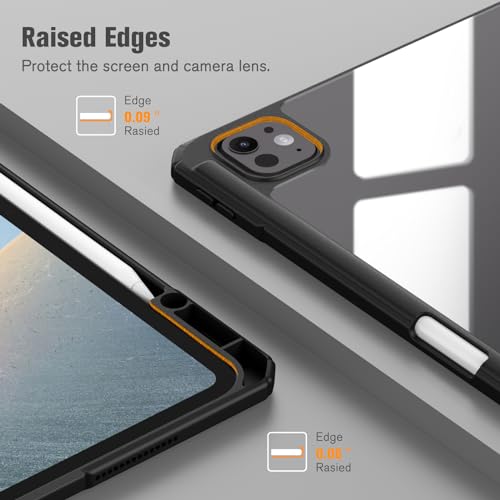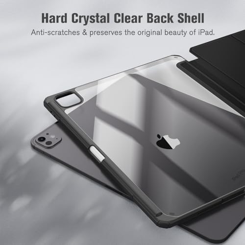 iPad Pro 13インチ(M4) ケース 2024 透明バックカバー Apple Pencil 収納可能 Apple Pencil Proワイヤレス充電対応 三つ折スタンド スリープ機能 軽量 薄型 傷つけ防止 PU合成レザー TPU (1ブラック)