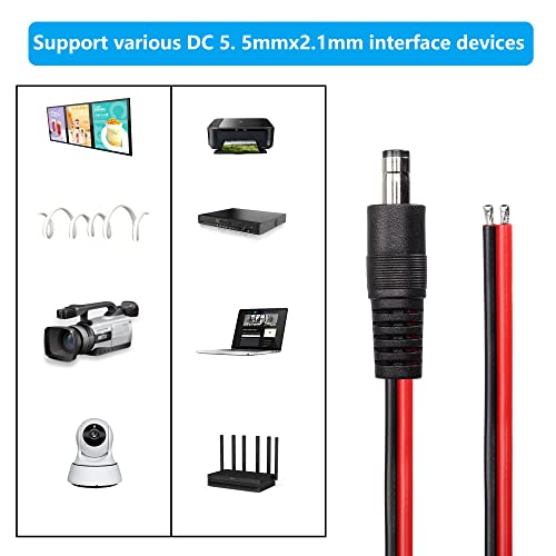 DC5521 電源 ピグテールケーブル 14AWG 5.5 mm x 2.1 mm DC裸線オープン電源コード CCTVの監視カメラ LEDの滑走路端燈等 DC電源の修理ケーブル 2個 1M (5521オス)