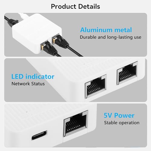 プラグアンドプレイ、イーサネットスプリッタ1 2、任意のアプリをインストールする必要はありません、プラグアンドプレイ、緩みのないタイトな接続 .USB充電ケーブル付き、それは一度に充電とネットワークをサポートすることができます。 (注:USB給電、未接続では使用できません)。