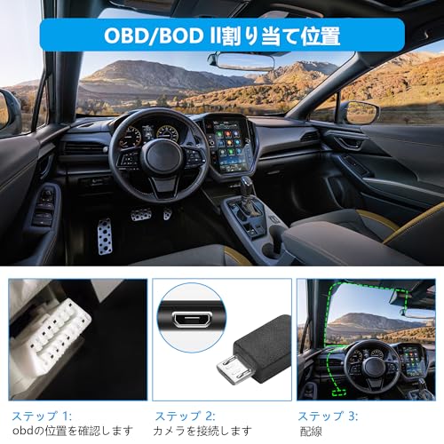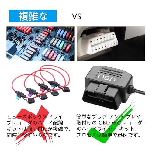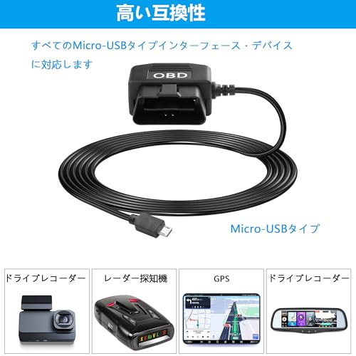 OBDインターフェイスから電力を得るだけで、他のOBDデータ通信を妨害しないので、より便利に使用できます。インターフェイスはMicro-USBタイプです。ご購入前に車種が適合するかどうかご確認ください。