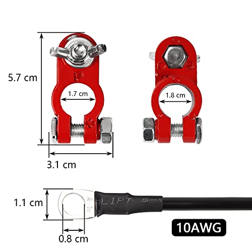 長さ:1M 包装: 赤と黒のアルミバッテリーターミナルコネクター1組 赤と黒の10AWGバッテリーケーブル1組