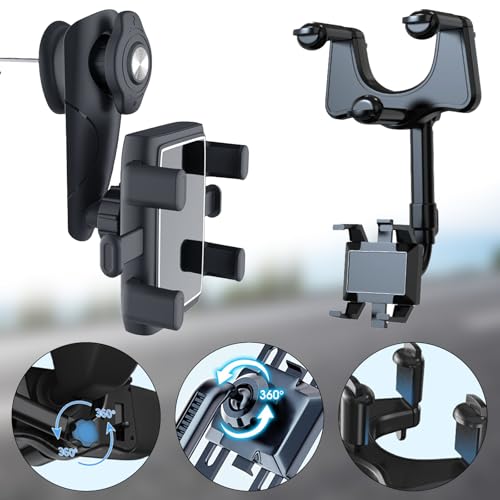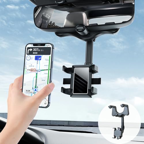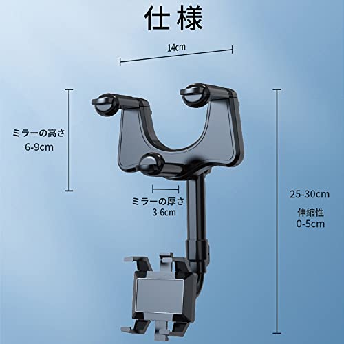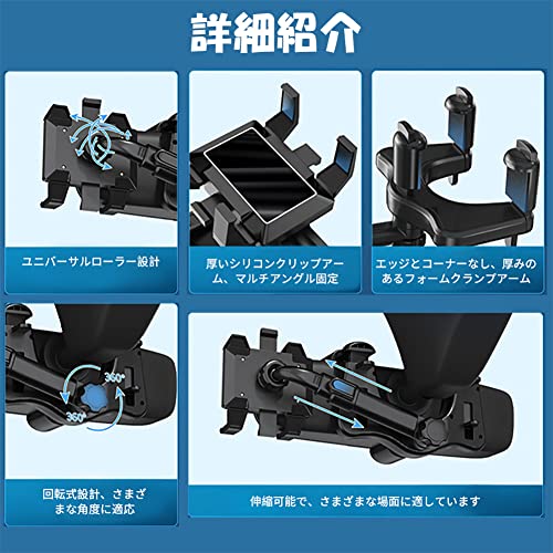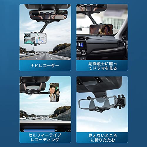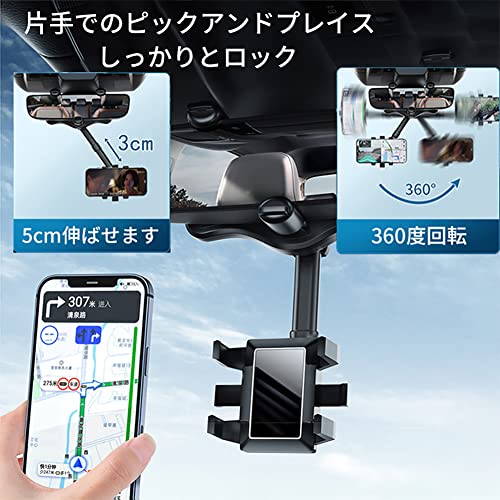 車載ホルダー クリップ式 バックミラー スマホホルダー 車 スマホ 360度回転 ルームミラー取り付け型 スタンド ダッシュボード 取り付け簡単 全車種 手帳型ケース対応 自由調節 車載 ナビ スタンド 滑り防止 保護パッド付 ほとんどのスマホ対応 設置簡単 ...