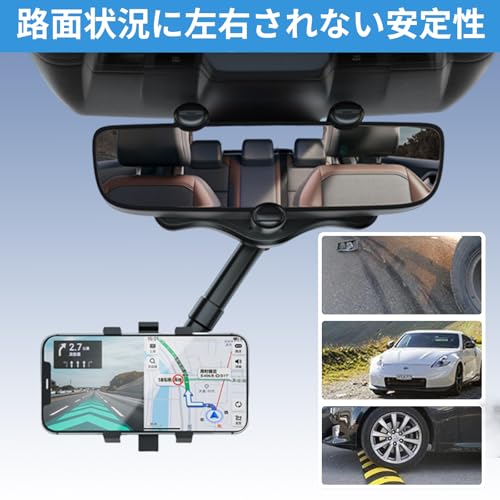 【ルームミラー取り付け型】頭を下げずに、ナビを見ながら運転できます。スマホの着脱もスムーズにさせ、日光に晒されても、劣化したり、壊れたりする心配は不要!抜群な耐久性!もっと楽な運転を体験しましょう。
