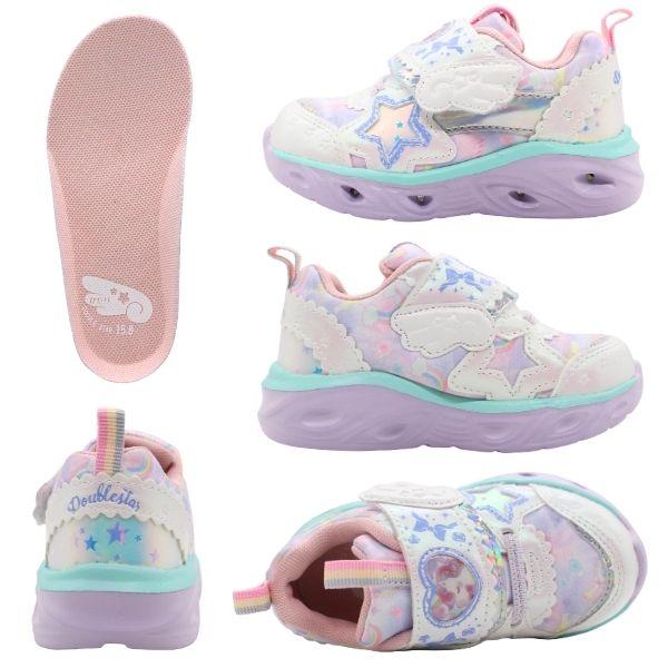 スニーカー キッズ ジュニア 子供 靴 女の子 光る ガールズ おしゃれ ユニコーン ゆめかわ ベルクロ マジックテープ 通園 保育園 幼稚園 遊び 運動 普段履き 外履き 履きやすい Double Star 4966