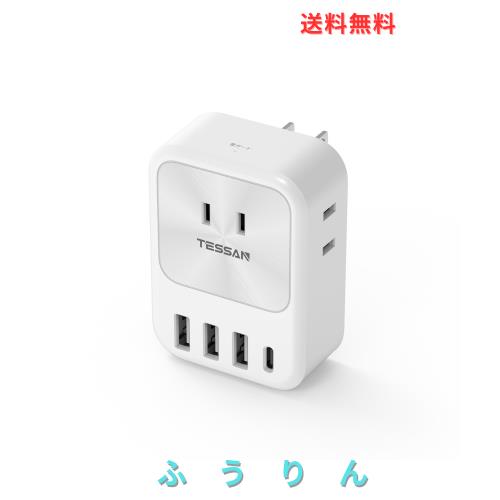USB コンセント タップ 電源タップ USB-C付き TESSAN 3個AC口 3個type-Aと1個Type-Cポート たこあしコンセント 3口 タコ足配線 マルチタ