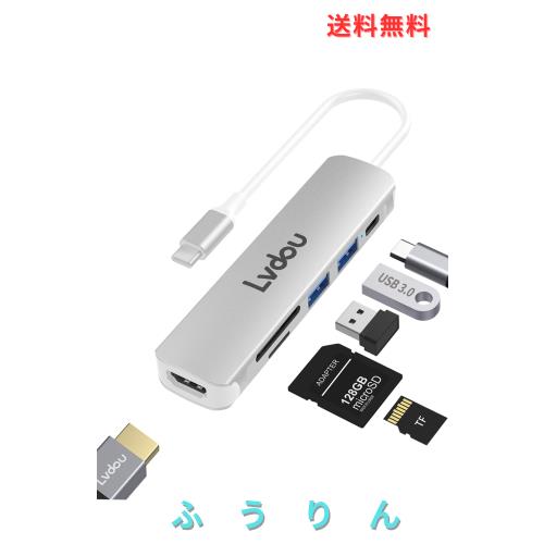 Lvdou USB C ハブ 6-in-1 Type-C アダプタ|100W PD充電・4K HDMI・MicroSD/SDカードリーダー・USB 3.0ポート搭載|MacBook Pro/Air (201