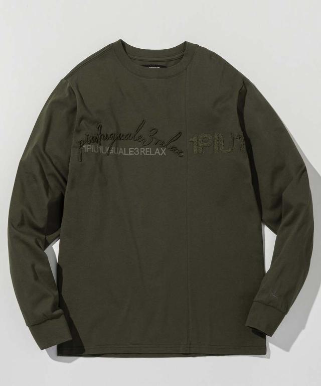 ウノピゥウノウグァーレトレ リラックス(1PIU1UGUALE3 RELAX)/1PIU1UGUALE3 RELAX スウィッチングロゴロングTシャツ