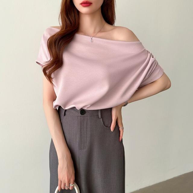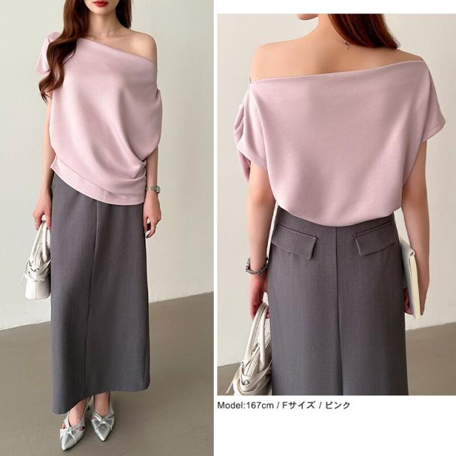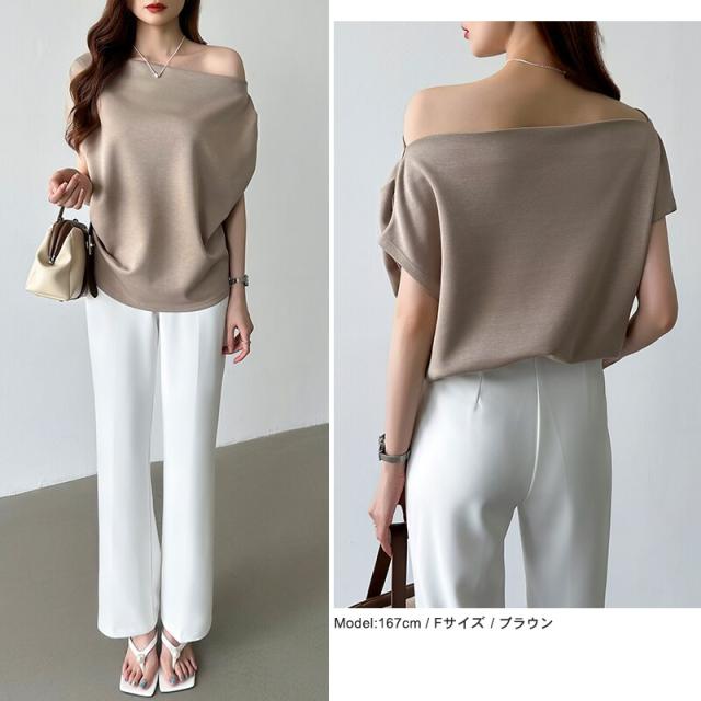 【着こなし自在】 オフショル 半袖カットソー ボートネック セクシー 夏トップス オフショルダー