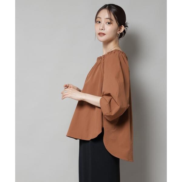 衿元のギャザーが大人フェミニンに映えるタックスリーブブラウス。クラシカルな着こなしが叶う秋カラーの色展開で、カジュアルにもキレイ目にも着回せる万能トップスです。