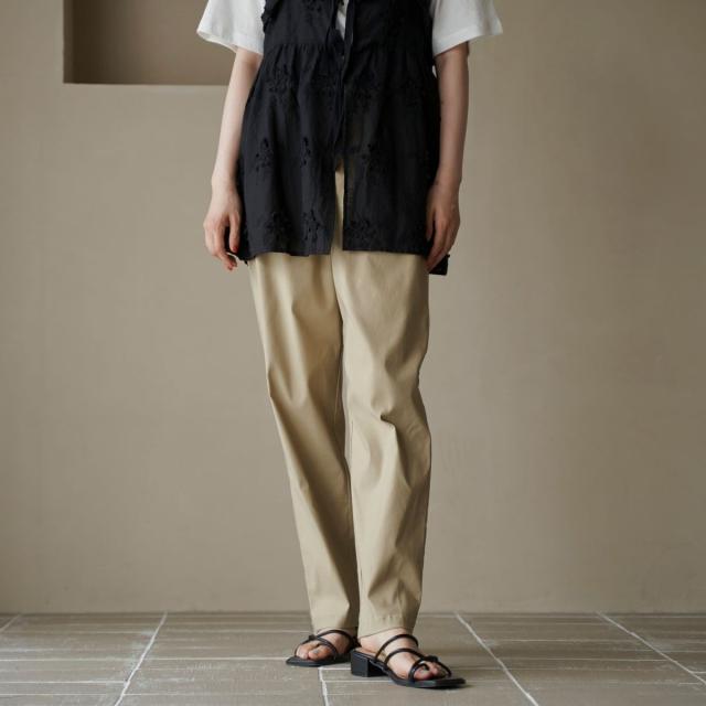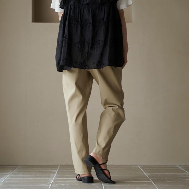 腰まわりにゆとりをもたせたタック入りで快適な履き心地を叶えつつ、テーパードの美しいシルエットを演出してくれる万能パンツ。