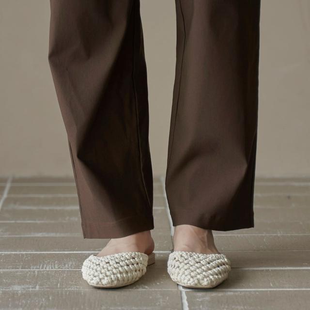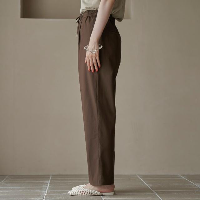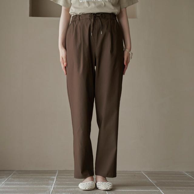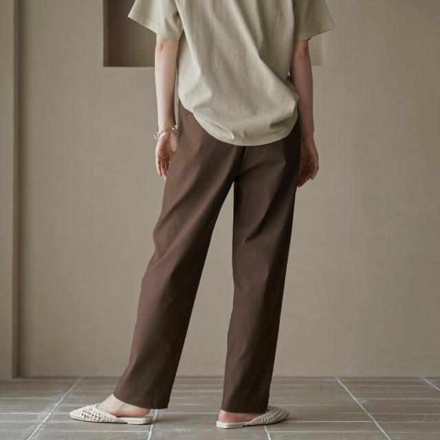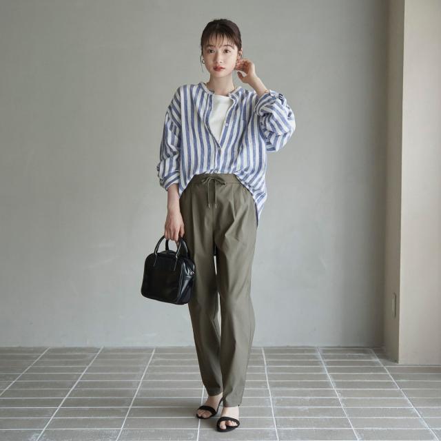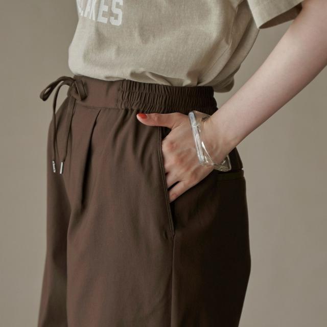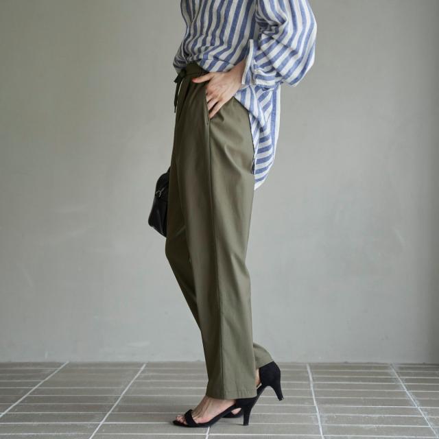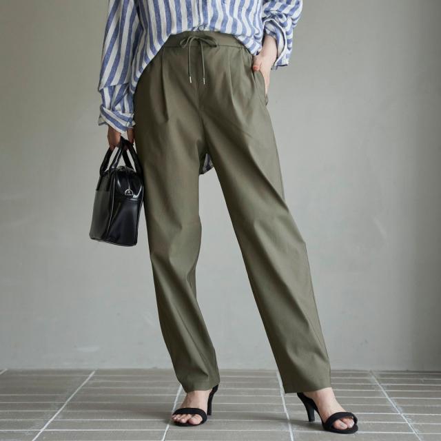 ・ワンタックと金具付きウエスト紐でカジュアルすぎず上品な印象に