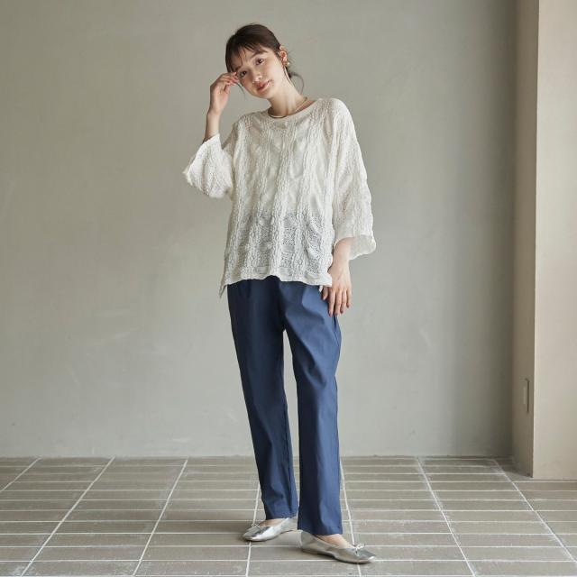 伸縮性に優れた楽ちんさ&キレイ見えを両立したパンツです。