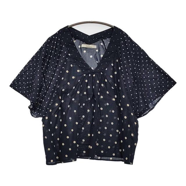 soil ドット柄 フレンチスリーブ インド製 Vネック ブラウス シャツ ネイビー ベージュ レディース ソイル【中古】5-0716S♪