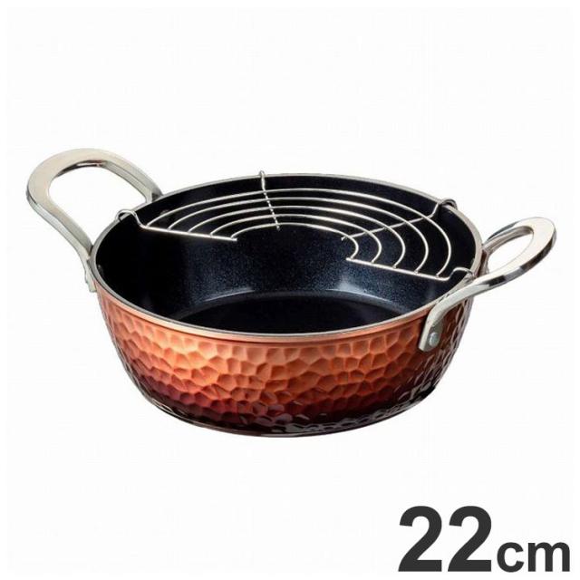 谷口金属 天ぷら鍋 22cm IH対応 槌目鍛造天ぷら鍋 アミ付き 内面セラミック セラミック加工 厚底 谷口金属工業(代引不可)【送料無料】