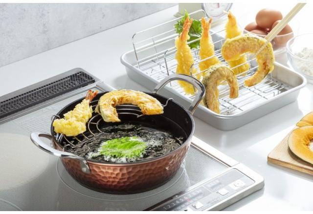 厚底なので油温が下がりにくく、カラッと揚がる天ぷら鍋です。