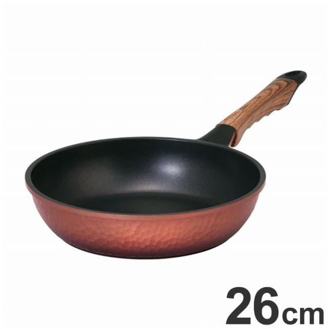 谷口金属 フライパン 26cm IH対応 槌目フライパン ガス火対応 槌目 木目調 ハンドル フッ素加工 洗いやすい おしゃれ 谷口金属工業(代引不可)【送料無料】