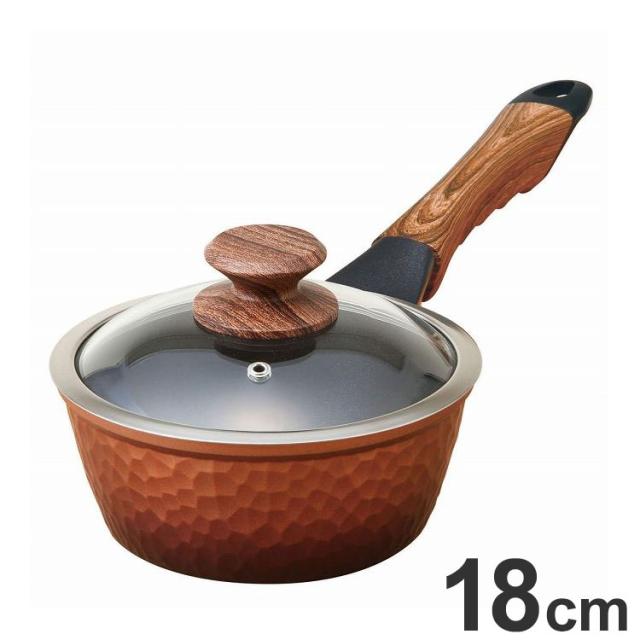 谷口金属 片手鍋 18cm 鍋 IH対応 ガス火対応 槌目 木目調 ハンドル フッ素加工 洗いやすい おしゃれ 槌目鍋 谷口金属工業(代引不可)【送料無料】