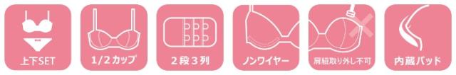 | ストラップ取り外し:不可 ストラップ長さ調節:可 パッド:あり(内蔵型) パッド取り外し:不可 ワイヤー:なし ホック:2段3列 ブラジャー&ショーツ/2点セット |