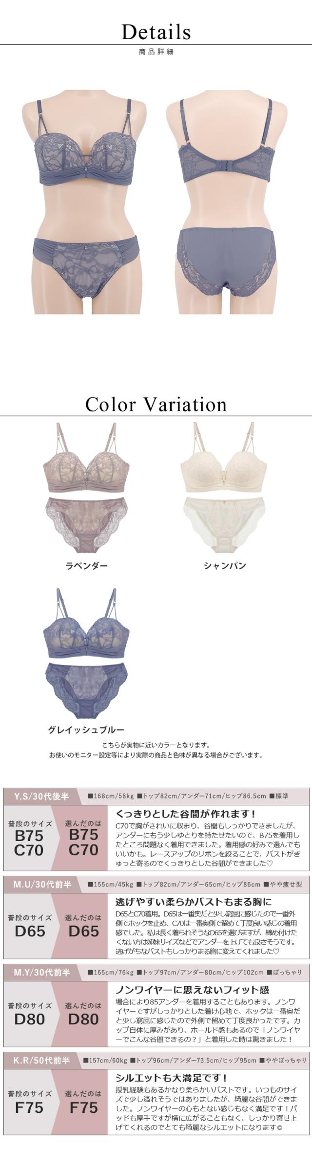 ※モニター環境により、色味が実際の商品と若干異なる場合がございます。 ※記載のセット内容のみの販売となり小物等は含まれません。 ※お洗濯の際は、洗濯表示(ケアラベル)の取扱い絵表示と注意事項をご確認ください。 ※常に商品改良を行っており、ご購入いただくタイミングにより仕様や着用感が若干異なる場合がございます。 u372ga ノンワイヤー ブラジャー ノンワイヤーブラ ワイヤーレス 丸胸 ふっくら モールドブラ デコルテ 補正 盛り 谷間 寄せ 谷間メイク モールドカップ バストメイク ブラジャー 下着 ブラショーツセット ナチュラル 自然 楽 痛くない レース かわいい おしゃれ 可愛い ソフト補正 脇肉 脇肉カバー 脇高 ナチュ盛り ストレスフリー champagne シャンパン lavender ラベンダー blue ブルー グレイッシュ くすみカラー 淡色 |