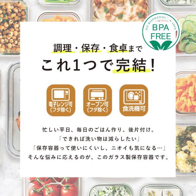 ■電子レンジ・オーブン・冷凍OK!作り置きに便利な密閉ガラス保存容器|選べる6サイズ・食洗機対応・BPAフリーで安心安全