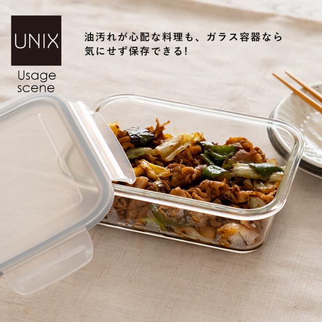ガラス 保存容器 長角型 LGO 640 アスベル ASVEL UNIX 保存 耐熱 レンジ対応 食洗器対応 オープン 調理 密封 弁当箱 冷凍 冷蔵 BPAフリー ギフト 作り置き