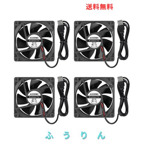 ◆商品名:ACEIRMC 80mm USBファン 4個 5V ブラシレス 8025 80x25mm 冷却 DIY PC コンピューターケース 3Dプリンター CPUクーラー ラジエーター (5V