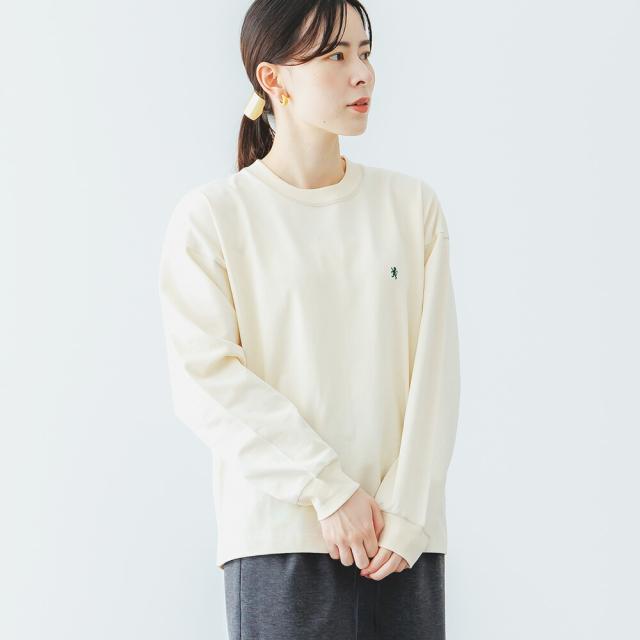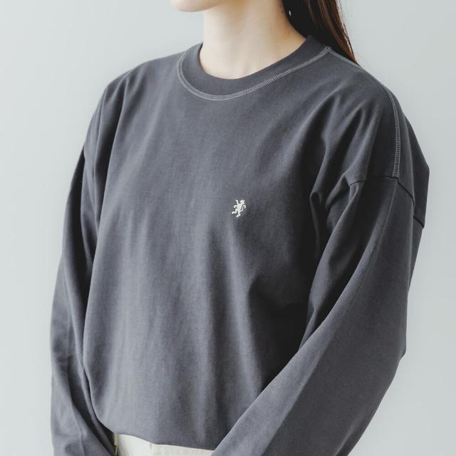 リラックス感とスタイルを両立する このロングスリーブTシャツは、ゆったりとしたワイドシルエットで、まるでスウェットを着ているかのようなリラックス感があります。3本針のステッチがアクセントになっていて、細部までこだわったデザインが魅力的です。胸元にはブランドロゴが入っていて、シンプルだけど存在感のあるポイントになっています。