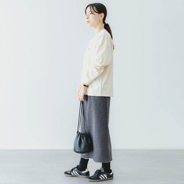 ボトムスに入れても、もたつきを感じさせずスッキリとしたコーデに。