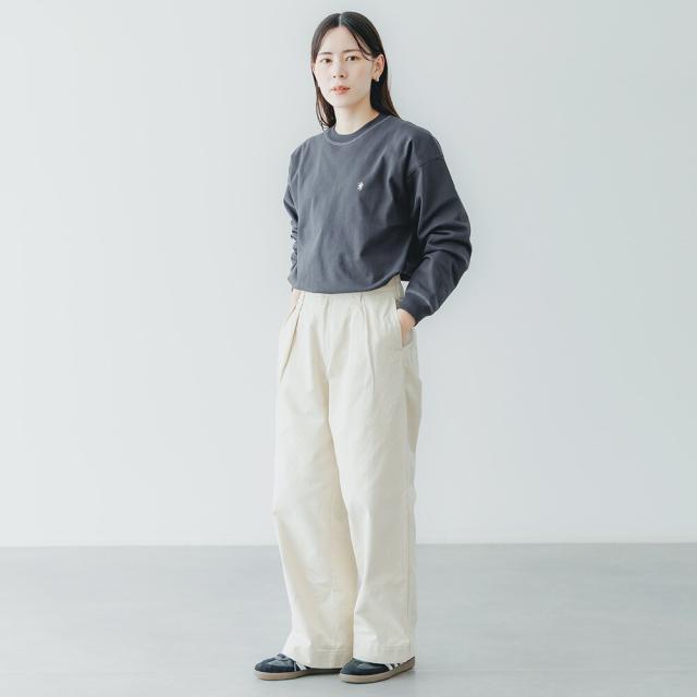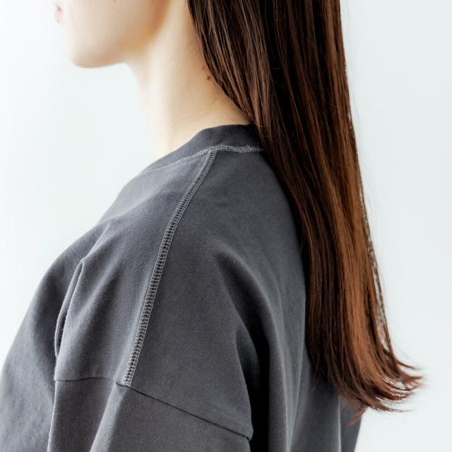 首もとには程よいゆとりがあり、大人のリラックスカジュアルにぴったりです。