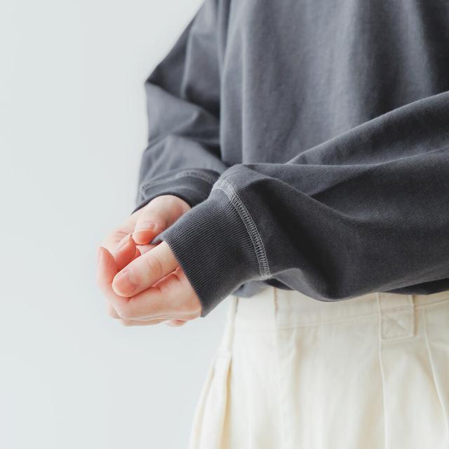 首元と同様に袖口もリブ仕様。 経年変化が楽しめる素材。