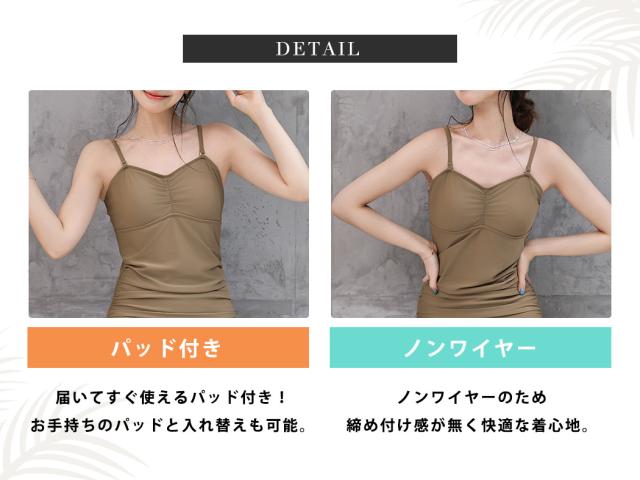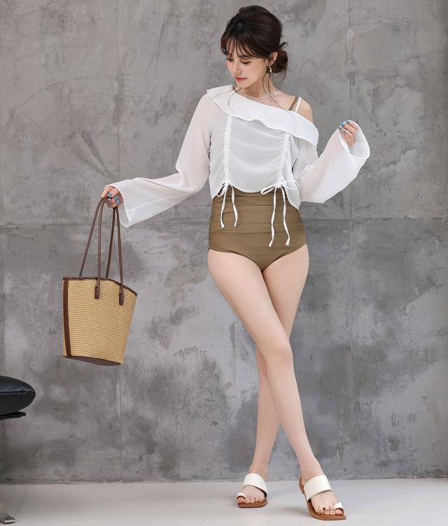 胸元とウエスト両サイドはギャザーでメリハリが出せる◎