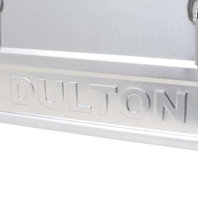 「DULTON」の立体的なエンボスロゴと、洗練されたプレートが特別感を演出します。