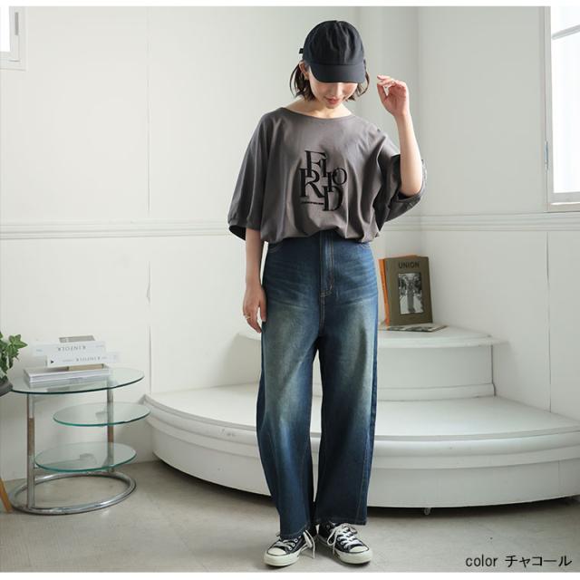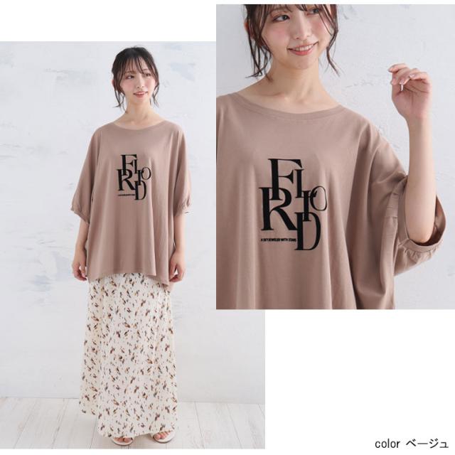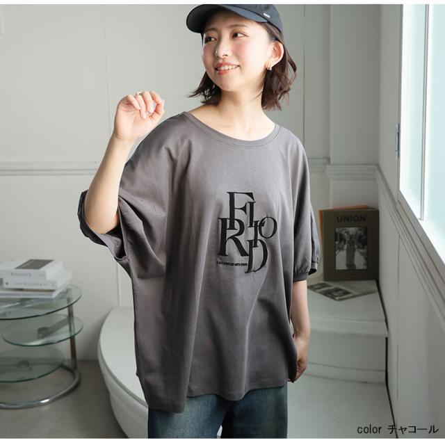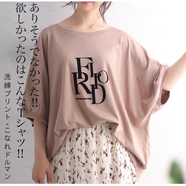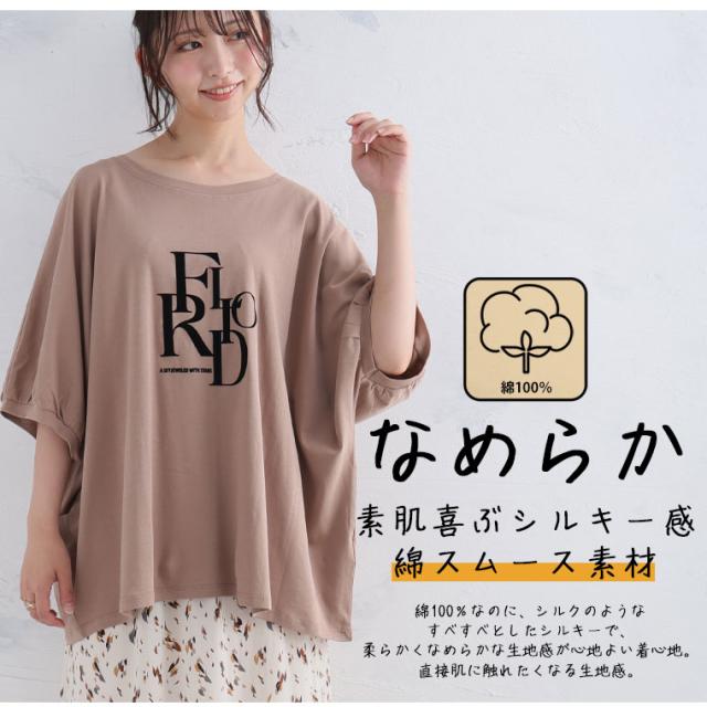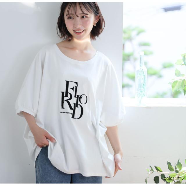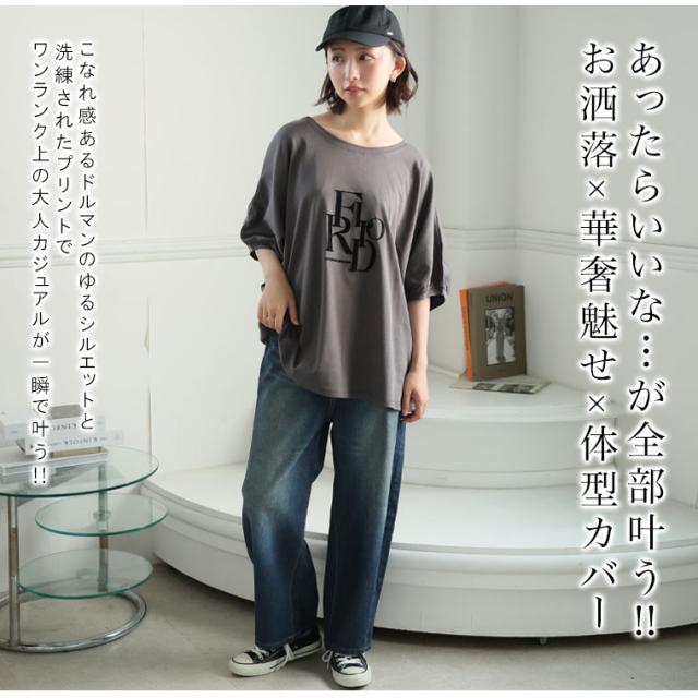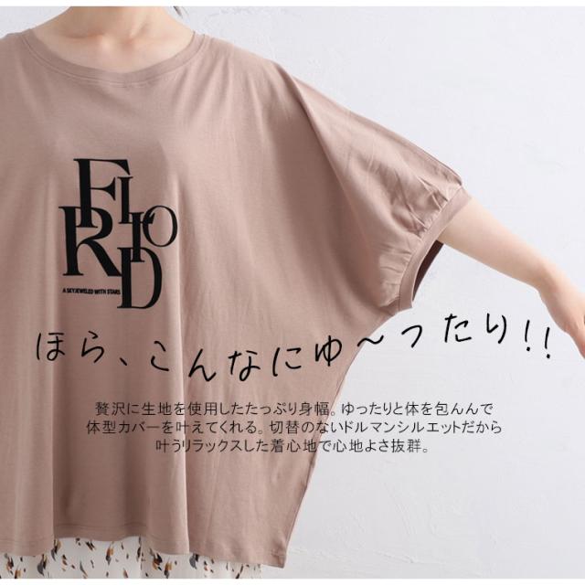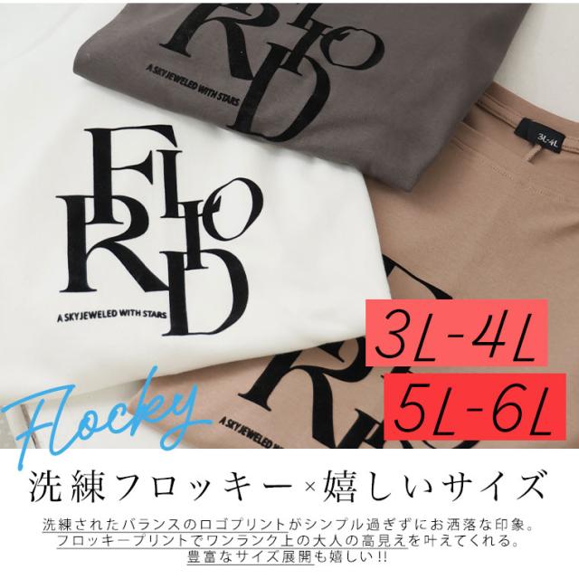 新作 大きいサイズ レディース トップス | 綿100% 欲しいを叶える 理想ドルマン フロッキー ロゴTシャツ [861835] 3L 4L 5L 6L