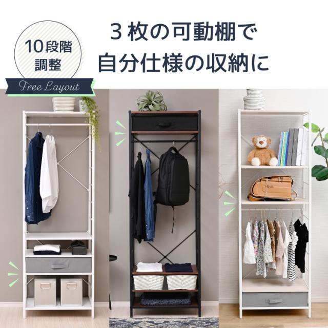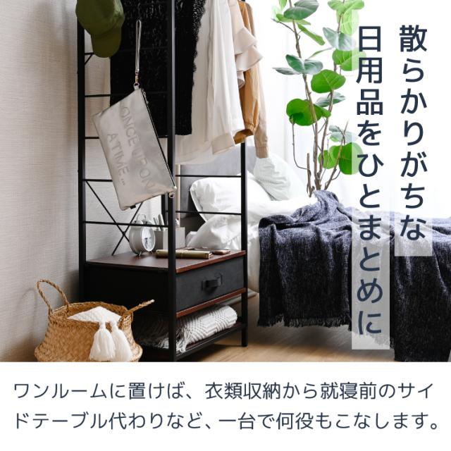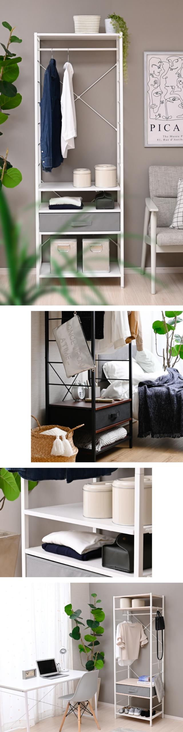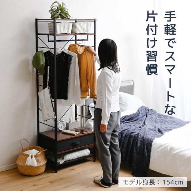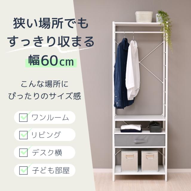 ハンガーラック 引き出し付き 棚付き スリム おしゃれ アイアン シンプル 北欧 幅60cm 奥行40cm 洋服 収納 衣類収納 棚 マルチハンガーラック シェルフ ラック ハイタイプ オープンラック 可動式 収納棚 頑丈 モジュールラック 組み合わせ カスタム