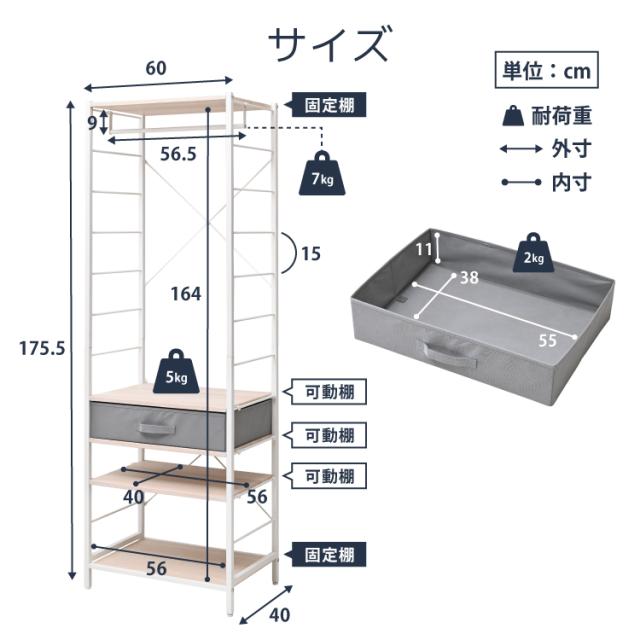 ・本体外寸:幅約60×奥行約40×高さ約175.5cm |