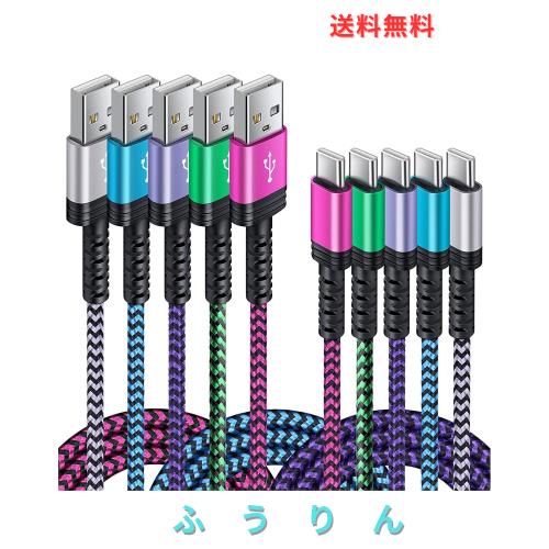 USB Type C ケーブル 【1.83m 5本*5色】 iPhone 16 15充電ケーブル 3A急速充電 QC3.0対応 タイプc充電ケーブル 高耐久 ナイロン iPhone