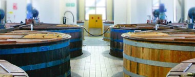 発酵は昔ながらのオレゴンパイン(オレゴン松)製のウォッシュバック(発酵槽)で行い、乳酸菌による乳酸発酵を促します。発酵時間も通常50時間程度のところをタリスカー蒸留所では70時間かけて発酵。これが、独特のフルーティーな香りと味わいを生み出します。