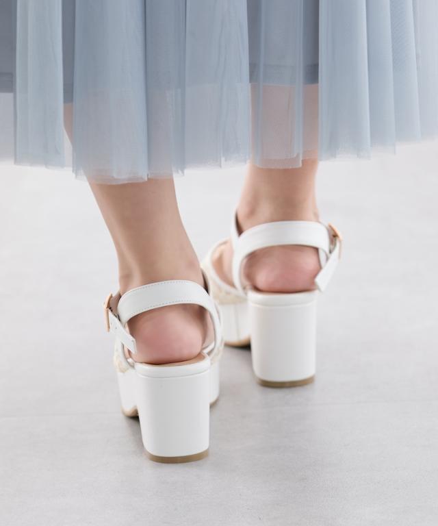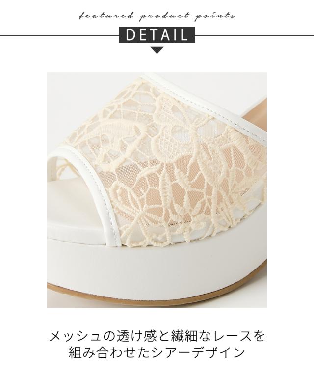 レディース ゆったり幅広 la farfa SHOES ラファーファ チュール デザイン ウェッジ サンダル 低反発中敷 ワイズ4E 夏 靴 | 26.0〜26.5cm | ニッセン nissen