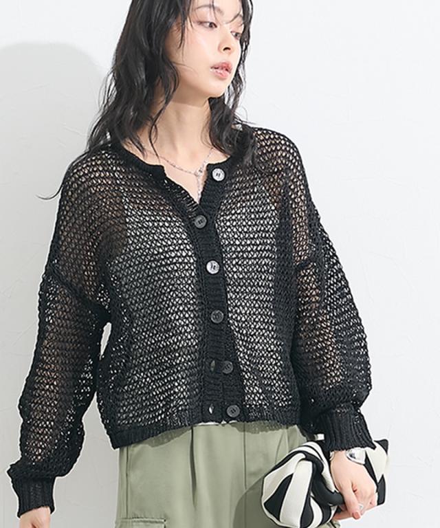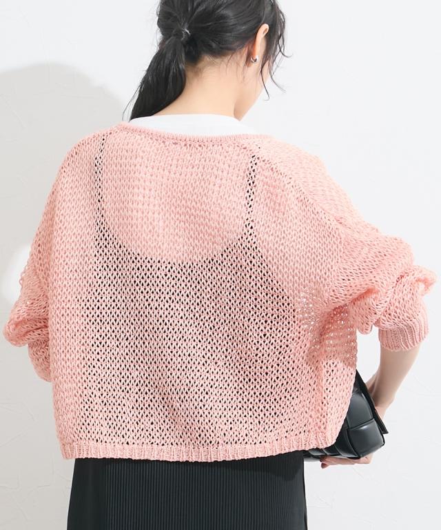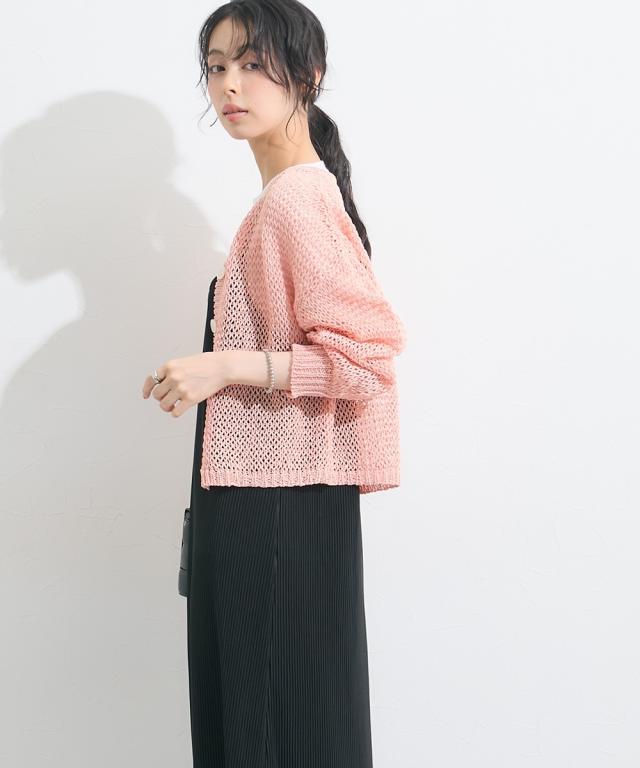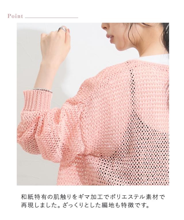 カーディガン レディース ゆるメッシュ編み和紙ライククルーネック ニット 夏 羽織り 冷房対策 | S/M | ニッセン nissen